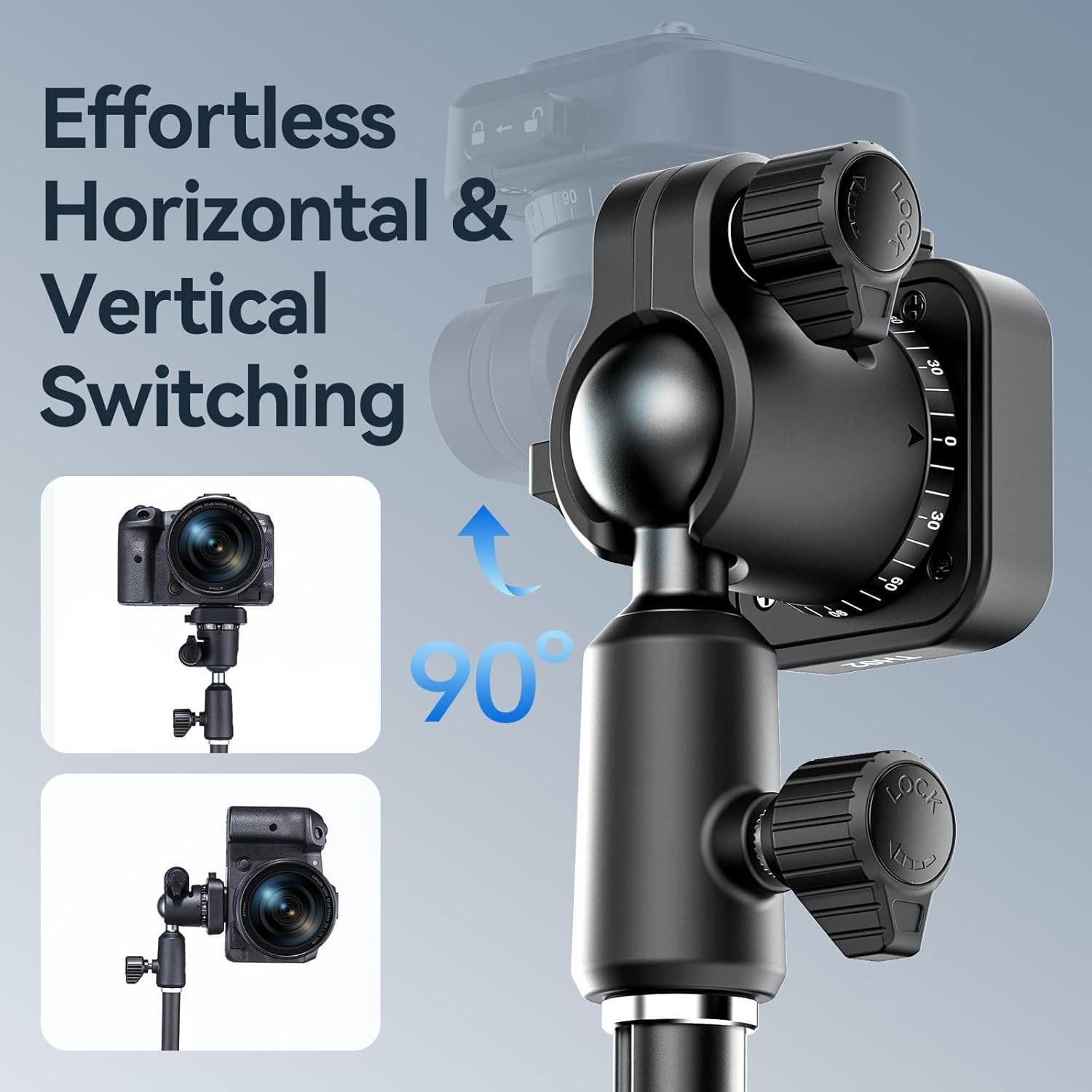 Mit seinem umgekehrten Kugelkopfdesign ermöglicht der TH02 eine reibungslose 360°-Panorama-Drehung und eine präzise Positionierung in mehreren Winkeln. Eine integrierte U-förmige Nut ermöglicht müheloses Umschalten zwischen horizontaler und vertikaler (Porträt-)Ausrichtung mit einer Neigung von 90°, was ihn ideal für Fotografie, Videografie, Livestreaming und Überkopfaufnahmen macht.