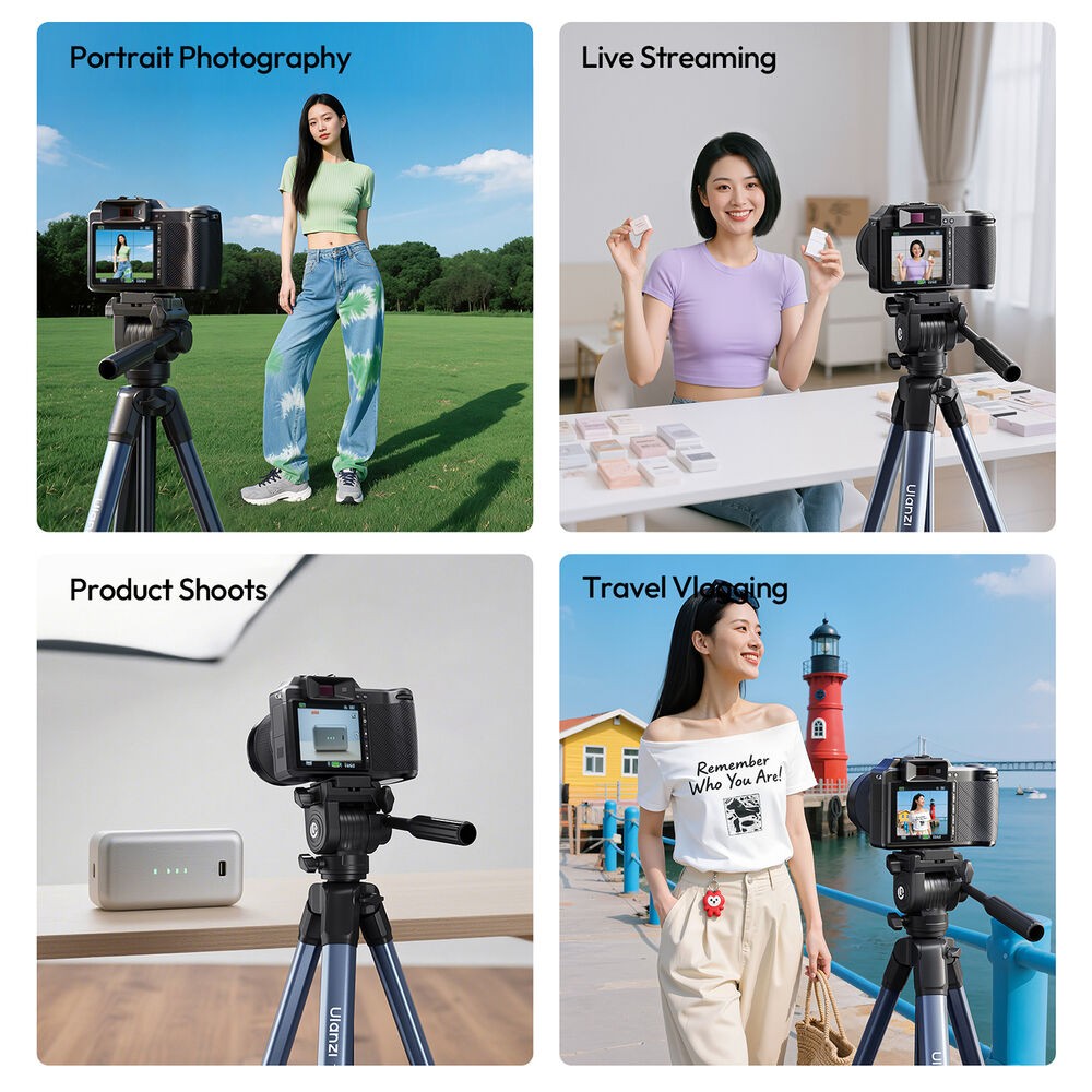 Das Ulanzi TT39 Video-Stativ ist ein leichtes, vielseitiges Aluminiumstativ, das für kreative Menschen entwickelt wurde, die viel unterwegs sind. Mit einer maximalen Höhe von 155 cm, einem Arca-Schnellwechselkopf und einer Tragkraft von 3 kg eignet es sich ideal für Kameras, kleine Rigs und Smartphones. Dank seiner fünfteiligen Beine, dem Schwenk-/Neigekopf und dem mitgelieferten Zubehör ist es perfekt für Aufnahmen aus niedrigen und hohen Winkeln geeignet, während das kompakte, faltbare Design und die Tragetasche einen einfachen Transport gewährleisten.