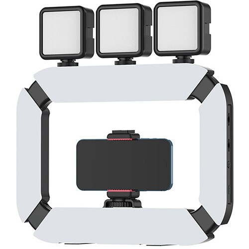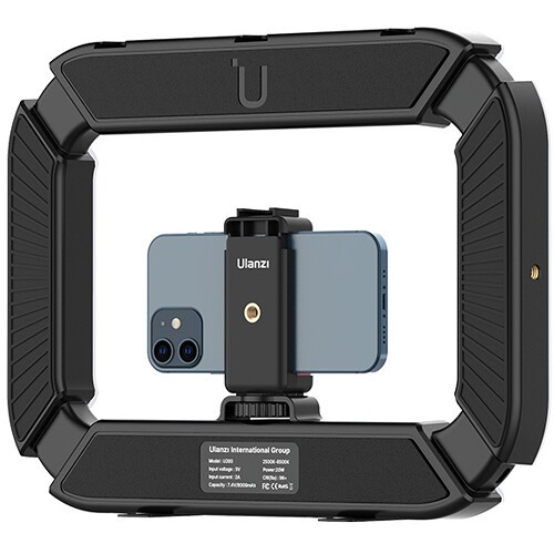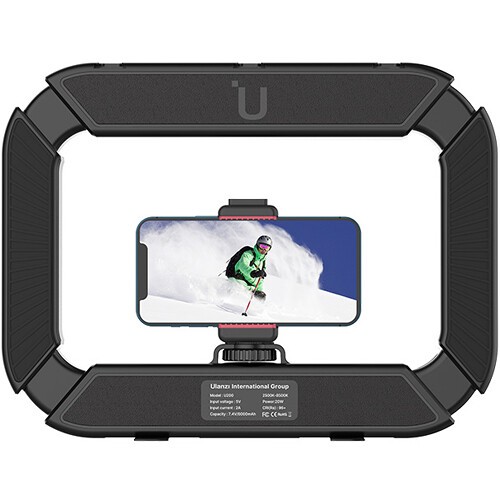 Die U200 verfügt über einen integrierten 8000-mAh-Lithium-Ionen-Akku, der das Licht bis zu 2,5 Stunden pro Ladung mit Strom versorgt und bequem über USB-C wieder aufgeladen werden kann. Das Rig umfasst eine 1/4"-20-Kamera-/Handyhalterung in der Mitte und eine 1/4"-20-Halterung an der Unterseite für Stative oder andere Befestigungen. Drei Kaltschuhhalterungen ermöglichen den Anschluss von Mikrofonen, Griffen oder zusätzlichen Leuchten und erweitern so Ihre kreativen Möglichkeiten. Das ergonomische Design sorgt für eine komfortable Handhabung und ist gleichzeitig vielseitig genug für stationäre Aufnahmen.