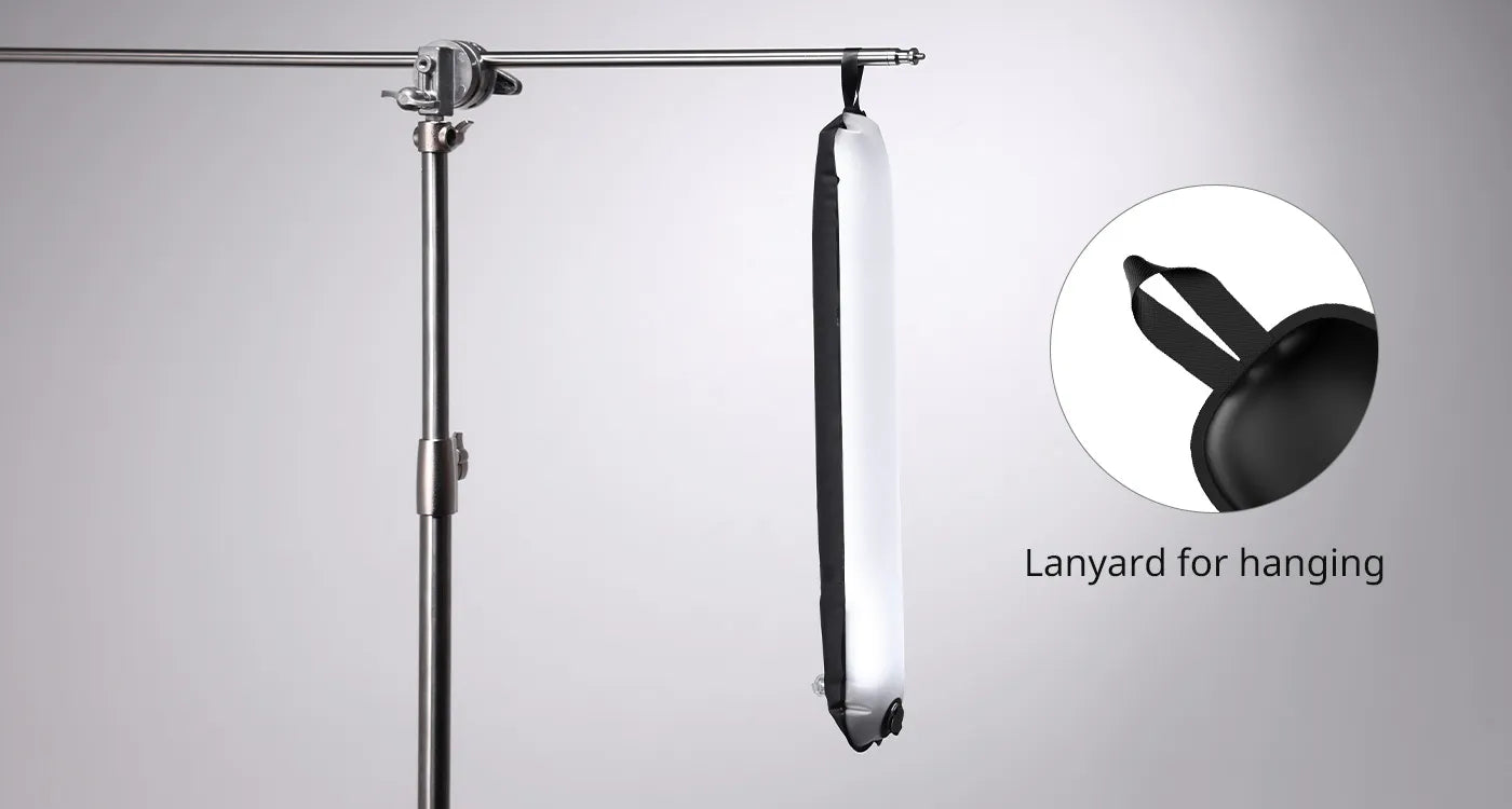 Die tragbare Luftröhrenleuchte Ulanzi UA12/UA20 lässt sich leicht aufblasen und entleeren und eignet sich für verschiedene Szenarien. Passen Sie die Farbtemperatur von 2700 K bis 6500 K an Ihre Aufnahmeanforderungen an. Steigern Sie Ihre Kreativität mit 12 voreingestellten Lichteffekten. Die Magnethalterung und der 1/4-Zoll-Ständer ermöglichen vielseitige Aufstellungen, und ein Trageband erleichtert das Aufhängen. Die Leuchte wird von einem 18-Wh-Akku gespeist, der in 2 Stunden schnell aufgeladen werden kann und bei voller Helligkeit eine Betriebsdauer von 75 Minuten (UA12) bzw. 55 Minuten (UA20) ermöglicht. Sie ist perfekt für den mobilen Einsatz geeignet und lässt sich im entleerten Zustand kompakt zusammenklappen.