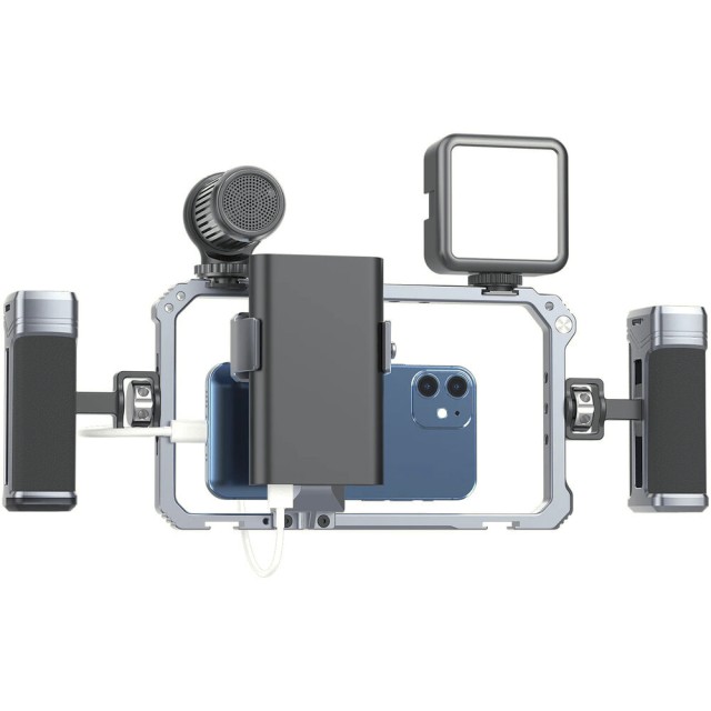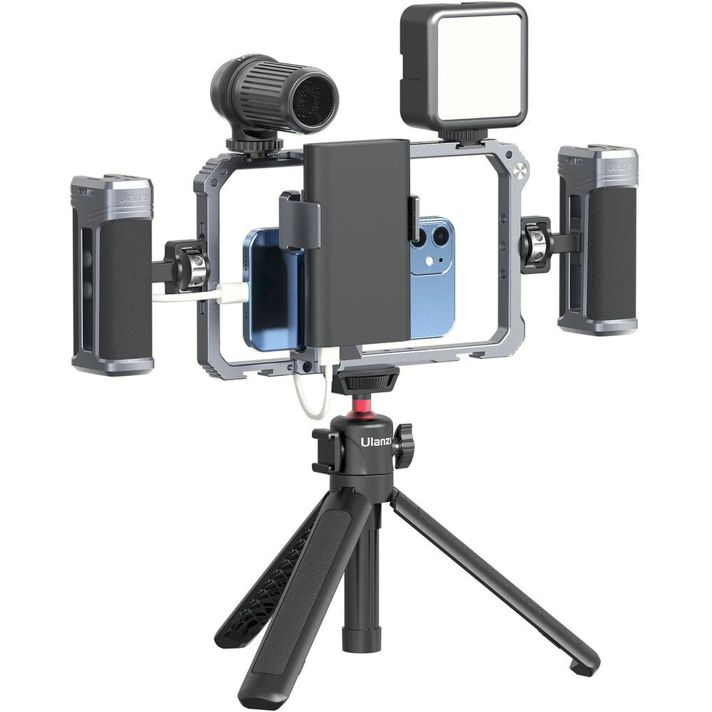 Das Ulanzi Universal Phone Vlogging Video Rig ist ein vielseitiges, professionelles Rig für Smartphones mit zwei verstellbaren Griffen, mehreren Befestigungspunkten und rutschfesten Polstern, um Ihre Aufnahmen für Vlogs, Streaming oder mobiles Filmen zu stabilisieren.