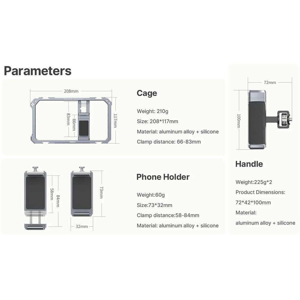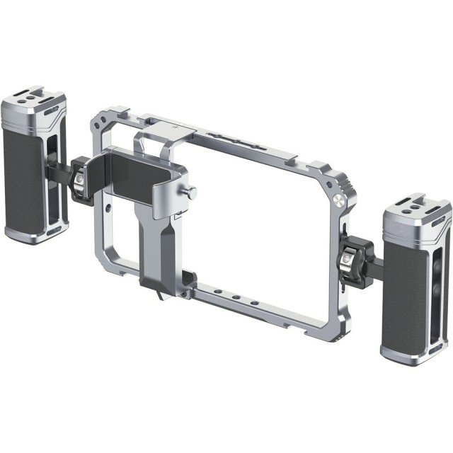 Eine dreiseitige rutschfeste Silikonpolsterung schützt Ihr Smartphone und hält es sicher an seinem Platz, während die robuste Konstruktion aus Aluminiumlegierung für Langlebigkeit sorgt, ohne übermäßiges Gewicht hinzuzufügen. Egal, ob Sie vloggen, live streamen oder filmreife mobile Inhalte erstellen – dieses Rig bietet die Stabilität und Erweiterbarkeit, um Ihren Workflow zu verbessern.
