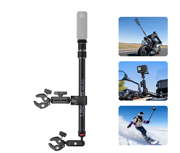 Der unsichtbare Selfie-Stick-Halter Ulanzi VL03 für Motorräder ist ein robustes und stabiles Befestigungssystem, das für flüssige, filmreife Aufnahmen bei hohen Geschwindigkeiten entwickelt wurde. Mit einer verbesserten Doppelklemmenkonstruktion, einer 1/4-Zoll-Klauenklemme und einer Superklemme mit Kugelkopf sorgt er für absolut stabile Befestigung bei Motorrädern, Action-Sportarten und Outdoor-Abenteuern. Er ist mit Actionkameras und Selfie-Sticks kompatibel und bietet vibrationsresistente Leistung für POV-Aufnahmen in professioneller Qualität.