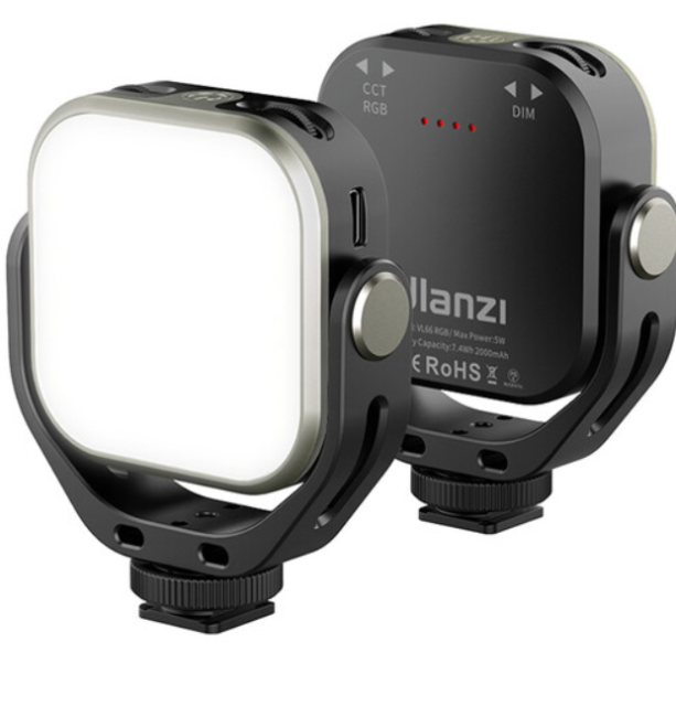 Die Ulanzi VL66 RGB LED-Leuchte ist ein kompaktes, tragbares Kraftpaket für Kreative und liefert lebendige RGB- und zweifarbige Beleuchtung in einem 3,6 x 3,1 x 1 Zoll großen Panel mit einem Gewicht von nur 3,6 Unzen. Mit einstellbaren Farbtemperaturen von 2500 K bis 6500 K, vollständiger RGB-Steuerung und bis zu 112 Lux bei 3,3 Fuß (oder 450 Lux bei 1,6 Fuß) erreicht sie eine CRI-Genauigkeit von 95 für naturgetreue Farben in Livestreams, Vlogs oder Fotos. Es wird von einem integrierten 2000-mAh-Akku mit einer Laufzeit von 120 Minuten bei voller Helligkeit gespeist und verfügt über intuitive integrierte Drehregler für CCT und Helligkeit, eine 360°-Drehung über eine U-förmige Halterung und eine vielseitige Befestigung mit einem Blitzschuhadapter oder einem 1/4"-20-Gewinde – sowie USB-C-Aufladung für Komfort unterwegs.