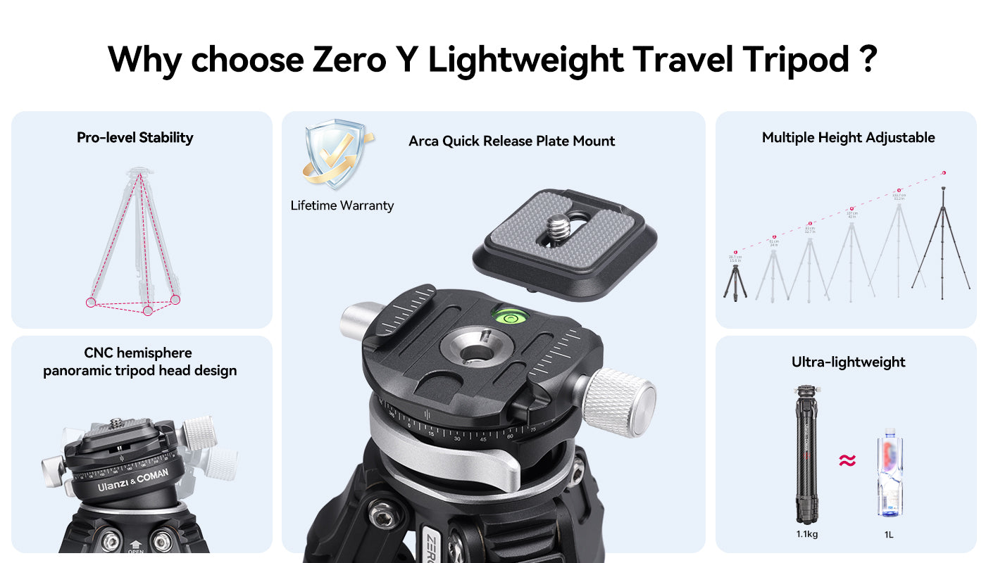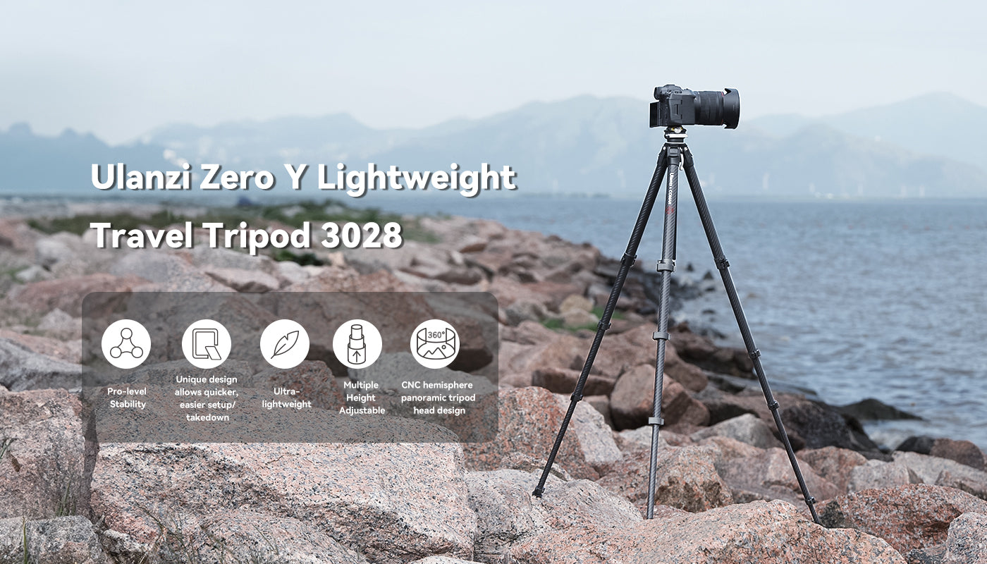 Ulanzi Zero-Y Carbonfaser-Leichtbau-Reisestativ 3028. Professionelle Stabilität. Einzigartiges Design ermöglicht schnelleres und einfacheres Auf- und Abbau. Extrem leicht. Mehrfach höhenverstellbar. CNC-gefräster halbkugelförmiger Panoramakopf.