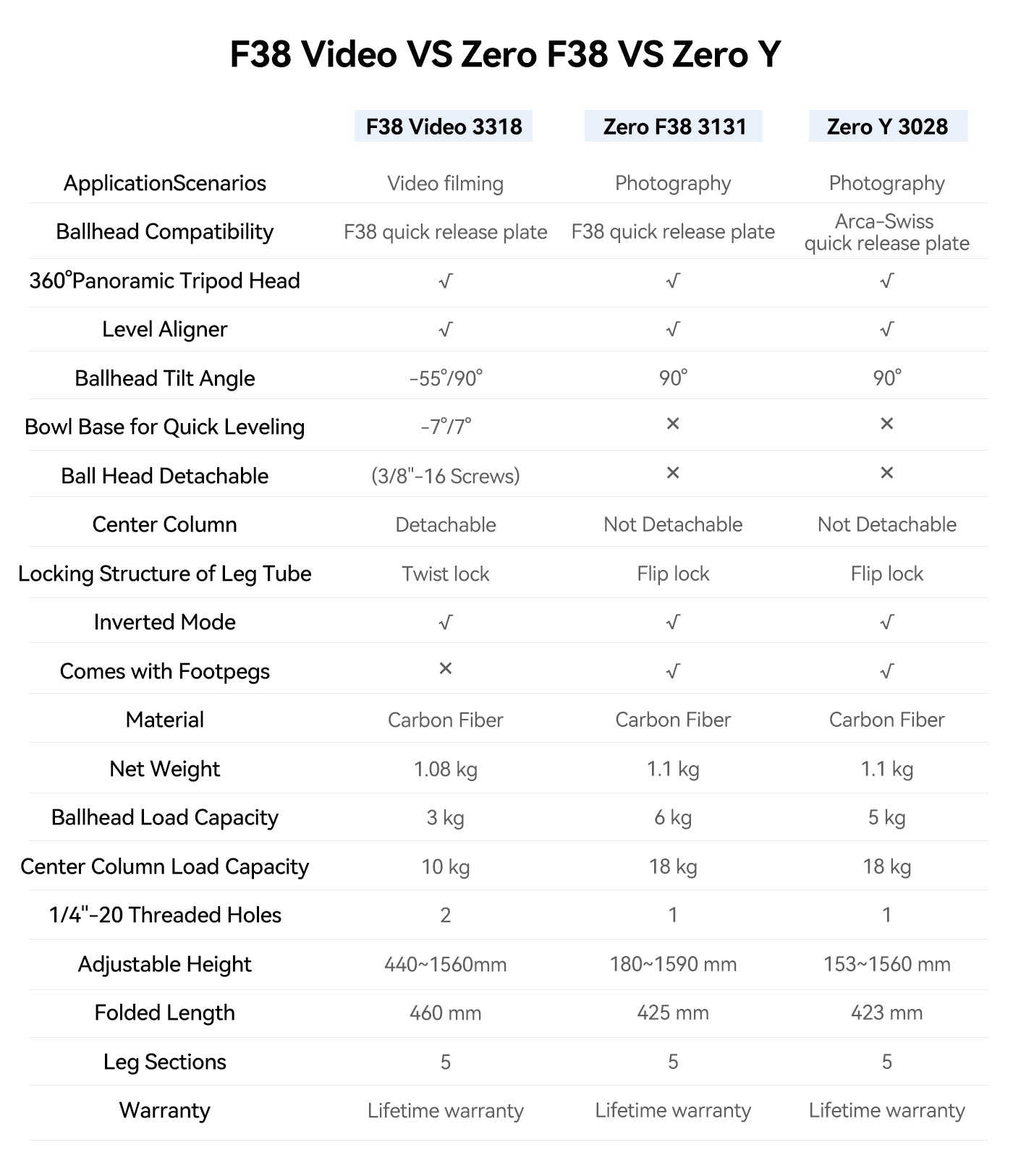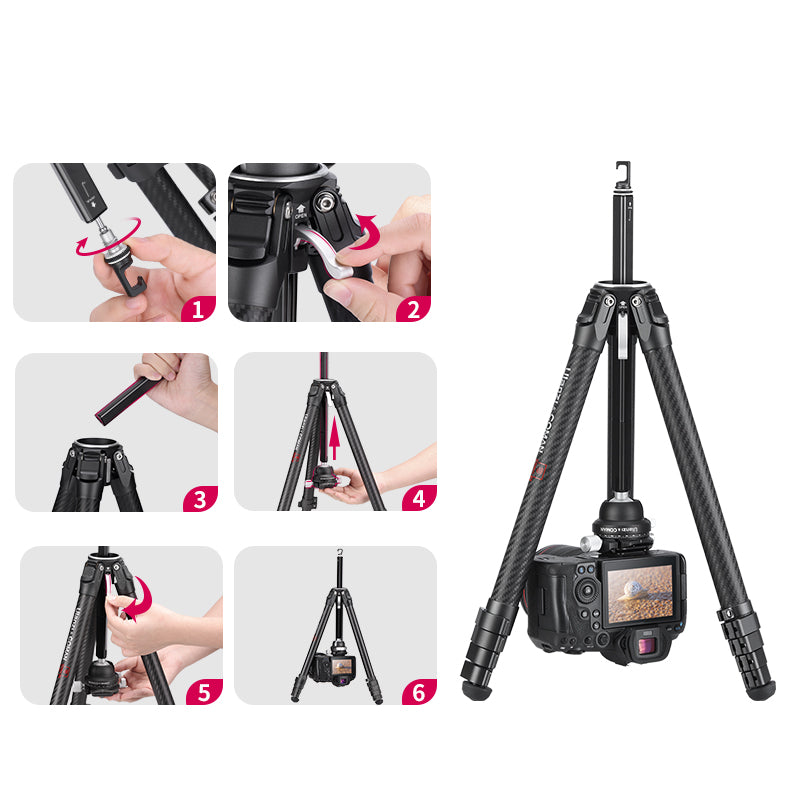 - Der Kugelkopf des Stativs ist nicht abnehmbar. Wenn Sie den Kugelkopf des Stativs austauschen möchten, empfehlen wir Ihnen den Kauf des Ulanzi F38 Schnellwechsel-Reisestativzubehörs – 1/4 Mittelsäule.