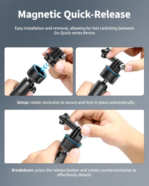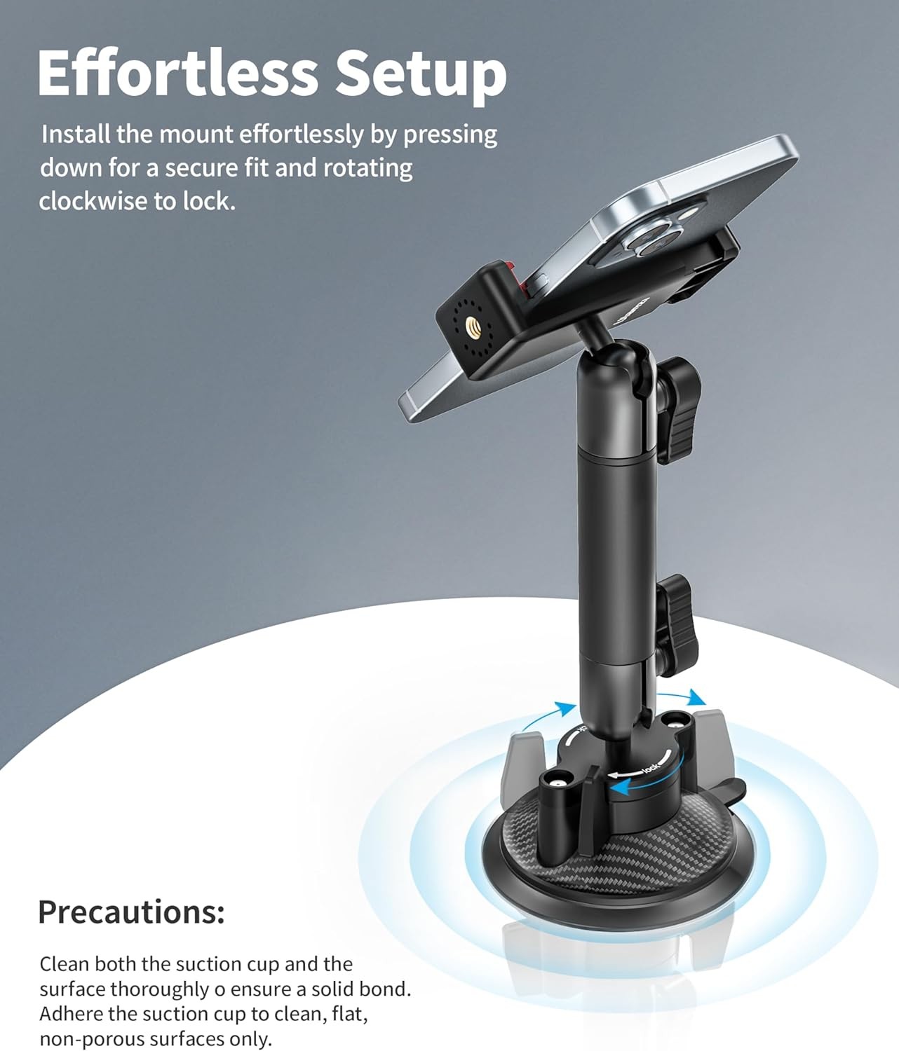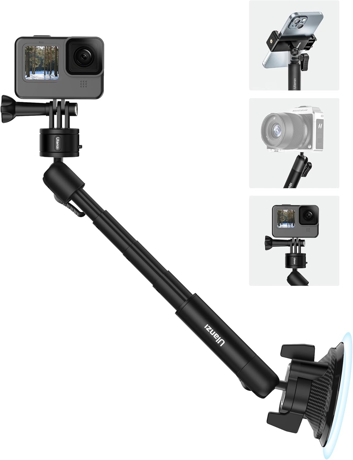 Der Teleskoparm der Halterung umfasst vier ausziehbare Stangen, die eine Verstellung um bis zu 13 cm ermöglichen, um unabhängig von der Oberflächenplatzierung die perfekte Perspektive zu erzielen. Die ZJ01 ist ideal für POV-Videos, die Befestigung an Fahrzeugen, Desktop-Setups oder flexible Aufnahmen im Innen- und Außenbereich und kombiniert Stabilität, Vielseitigkeit und Komfort für Content-Ersteller, die viel unterwegs sind.