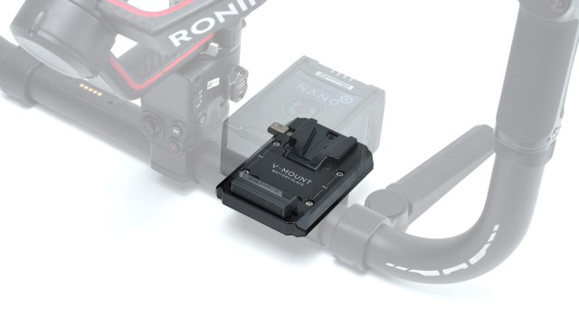 Diese V-Mount-Akkuplatte wird direkt am Basic oder Advanced Ring Grip für den RS 2 angebracht und ermöglicht es Ihnen, Ihren Gimbal mit V-Mount-Akkus höherer Kapazität ohne externe Kabel zu betreiben.