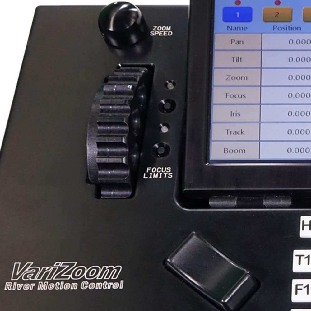Die VariZoom River Multi-Head-Steuerkonsole wurde für professionelle Mehrkamera-Produktionen entwickelt und ermöglicht die framegenaue Steuerung von bis zu vier 7-achsigen Fernkamerasystemen. Die River-Konsole ist mit den Fernsteuerungsköpfen CinemaPro, CP Micro und CP JR kompatibel und ermöglicht die Steuerung der Achsen Pan, Tilt, Zoom, Focus, Iris, Track/Dolly und Boom, entweder unabhängig voneinander oder gleichzeitig über mehrere Kameras hinweg.