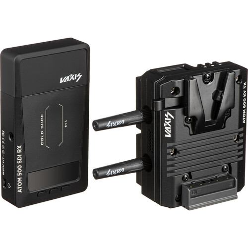 Übertragen und empfangen Sie drahtlos bis zu 1080p60 Video zur Überwachung Ihrer RED KOMODO Kamera mit diesem schwarzen ATOM 600 KV Wireless TX/RX Kit von Vaxis. Mit diesem Sender- und Empfänger-Kit können Sie 1080p60-Videosignale drahtlos an den ATOM 500 SDI-Empfänger von Vaxis mit weniger als 80 ms Latenzzeit übertragen. Der Sender sendet ein starkes Line-of-Sight-Signal bis zu 600'.