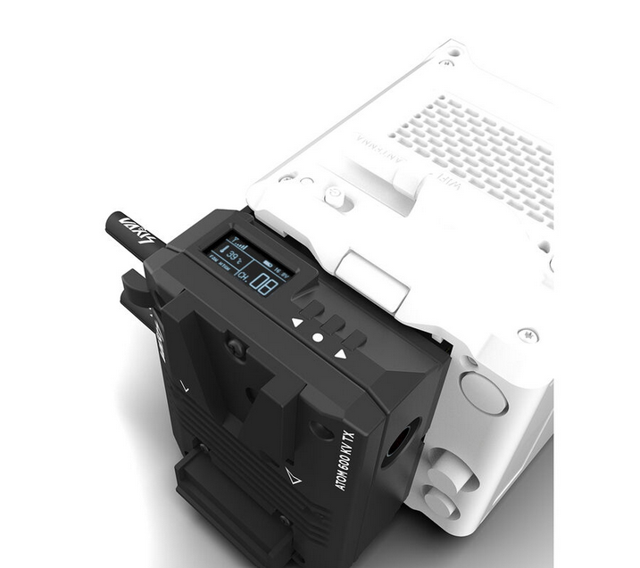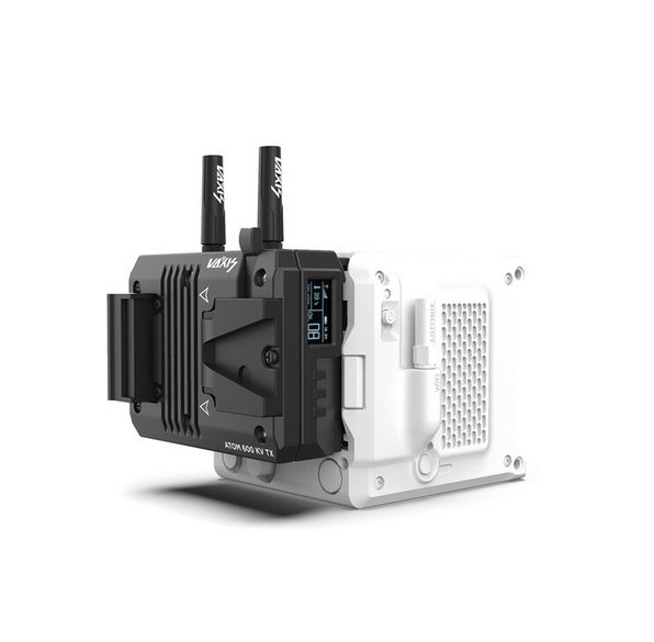 Der drahtlose Sender Vaxis ATOM 600 KV wird direkt an der RED KOMODO montiert und überträgt 1080p60-Videos mit einer Reichweite von bis zu 600 Fuß Sichtlinie und einer Latenz von <80 ms über SDI/HDMI, Stromversorgung über V-Mount mit Durchgang zur Kamera und Wi-Fi-Multicast zu iOS-Geräten.