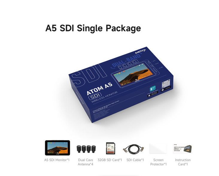 Der Vaxis Atom A5 SDI ist ein kompakter 5,5-Zoll-Touchscreen-Funkmonitor mit einer Auflösung von 1920 x 1080 Pixeln und integrierter TX/RX-Funktionalität, der innerhalb des Atom-Ökosystems eine Übertragungsreichweite von bis zu 1000 Fuß unterstützt. Er verfügt über SDI/HDMI-Eingänge und Loop-Ausgänge, integrierte MP4-Aufzeichnung auf microSD, doppelte L-Serie-Batterieplatte, 2000 cd/m² Helligkeit, austauschbare Antennen, Timecode-Synchronisation, 3D-LUT-Unterstützung und fortschrittliche CINE OS-Tools einschließlich Scopes und Peaking für präzises Monitoring am Set und drahtlosen Follow Focus.