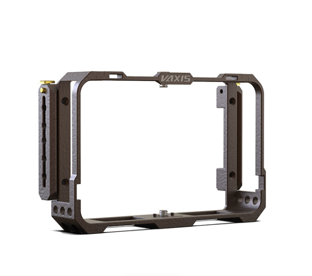 Der Vaxis VAC23-02 Monitor Cage bietet dauerhaften, leichten Schutz für den Atom A5 SDI 5,5-Zoll-Funkmonitor. Er lässt sich mit unverlierbaren Schrauben oben und unten sicher befestigen, wobei alle Anschlüsse und Tasten vollständig zugänglich bleiben. Er verfügt über zwei NATO-Seitenschienen sowie mehrere Befestigungsgewinde für Zubehör wie die Vaxis-Sonnenblende oder Seitengriffe.