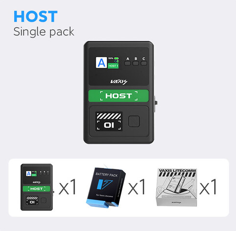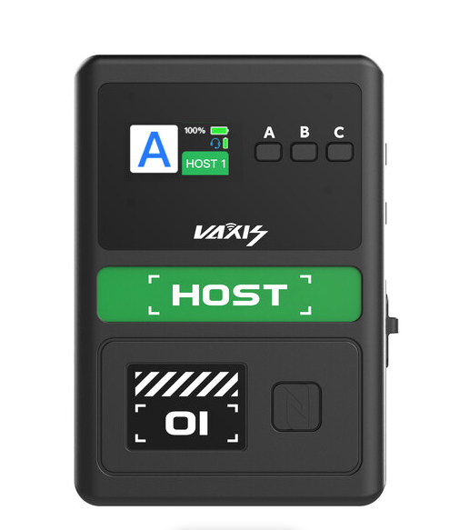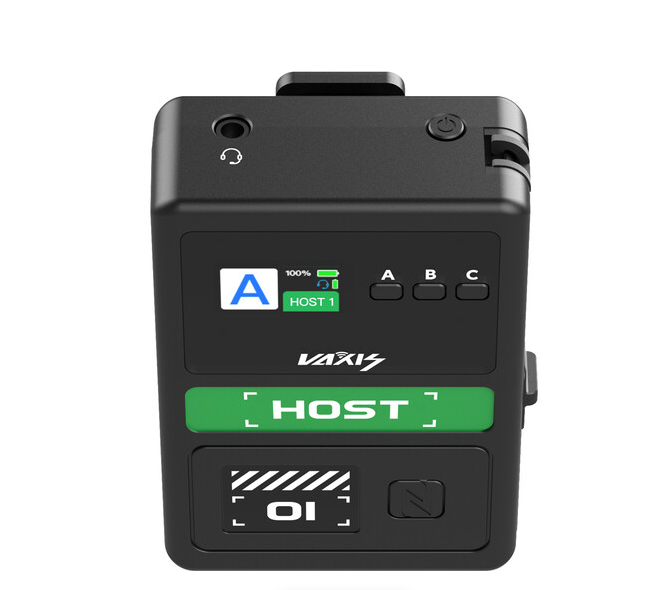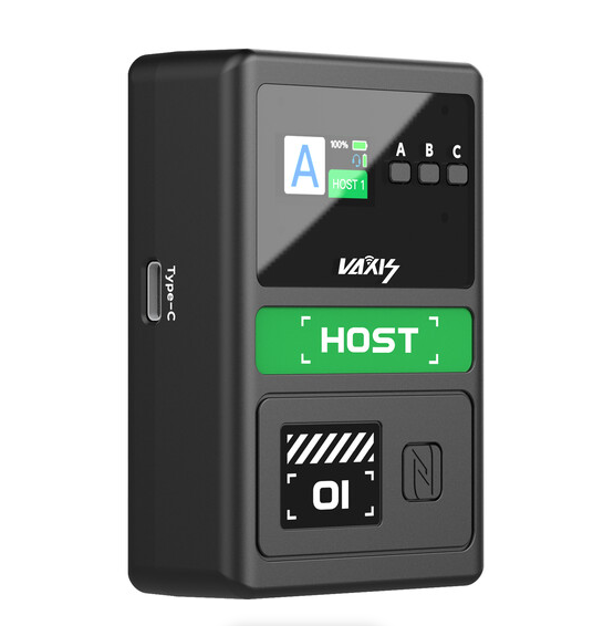 Der Vaxis Litecomm V1 Host Controller ist ein Vollduplex-Funk-Intercom-Hub für das Litecomm V1-System, der eine Reichweite von 350 m (1148') bei Sichtverbindung mit 1,9 GHz DECT, NFC-Schnellkopplung mit dem Host, Bluetooth 5.1-Konnektivität zum Air Headset (separat erhältlich), DSP-Rauschunterdrückung mit zwei Mikrofonen, USB-C-Lade-/Audioanschluss, 3,5-mm-Ausgang und eine Laufzeit von bis zu 8 Stunden mit dem mitgelieferten austauschbaren 1720-mAh-Akku. Dank seiner einfachen Bedienung ist er ideal für Produktionsteams geeignet.