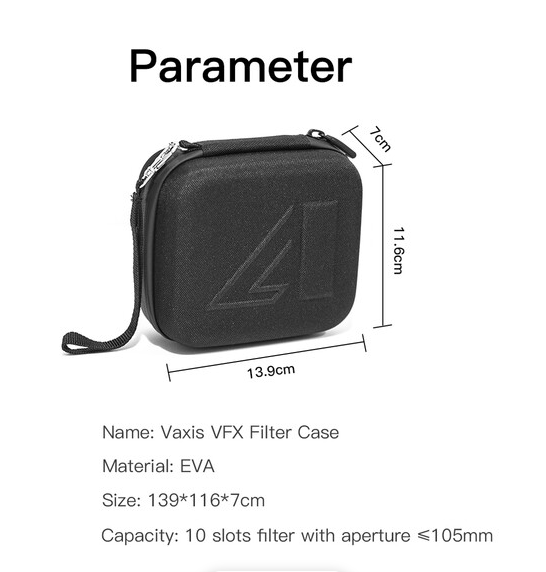 Der Vaxis VFX Filter Case (VAR23-13) ist eine kompakte, wasserdichte und robuste Aufbewahrungslösung in Schwarz, die bis zu zehn 105-mm-Filter sicher in einzelnen, mit Stoff ausgekleideten Fächern aufbewahrt, um Kratzer zu vermeiden. Er verfügt über einen zuverlässigen Reißverschluss und eine robuste Außenhülle aus…