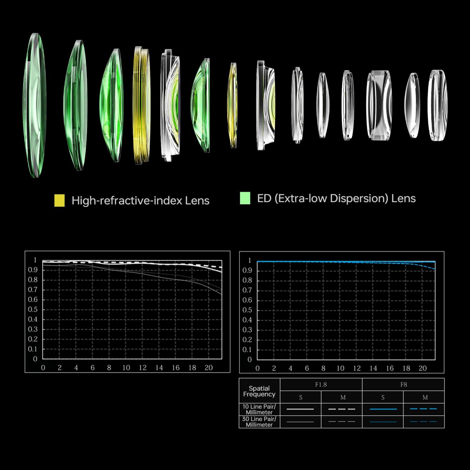 Enthält einen Fokusbegrenzer, zwei anpassbare Fn-Tasten und einen Multifunktionsring für flexible Einstellungen.