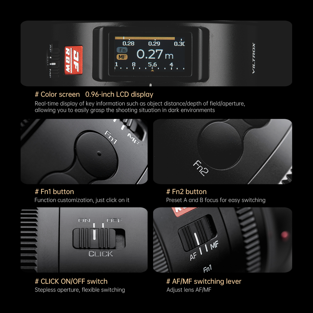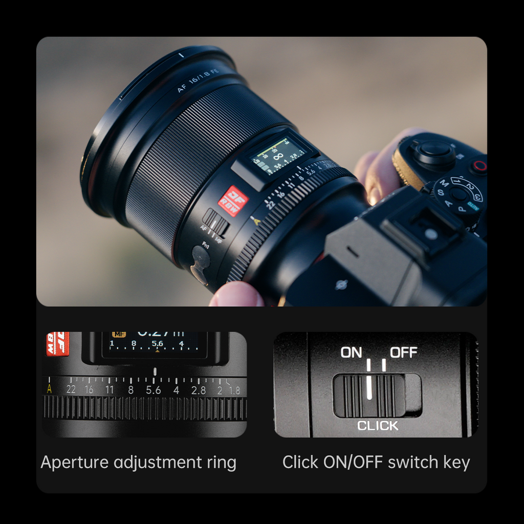 Das Objektiv 16mm F1,8 verfügt über fünf kreative Bedienelemente, die ein neues und effizientes Aufnahmeerlebnis ermöglichen.
