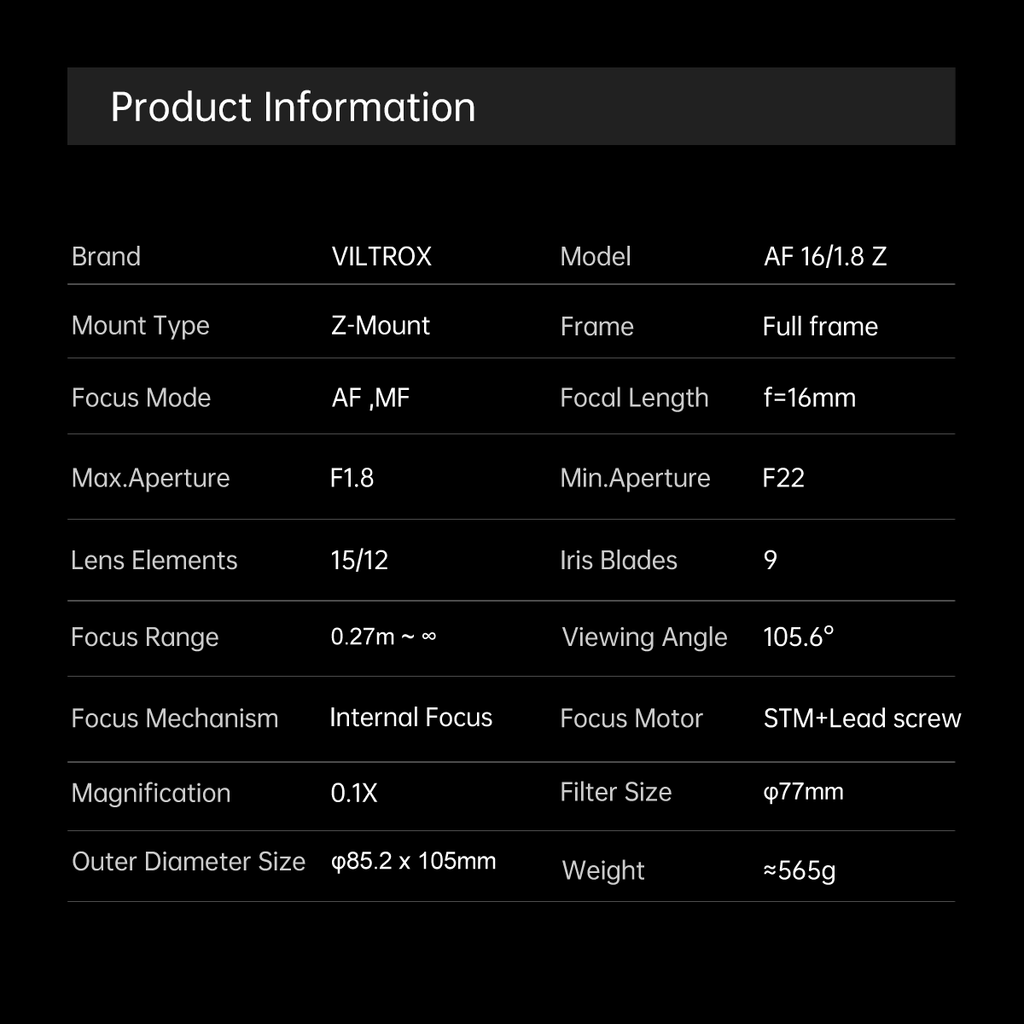 Das AF 16mm F1,8 Z verwendet eine optische Linsenstruktur mit 15 Elementen in 12 Gruppen und drei eingebauten asphärischen Linsen, die für ein hochauflösendes Bilderlebnis sorgen.