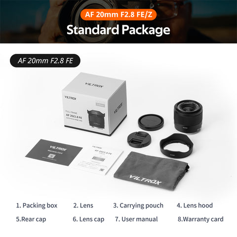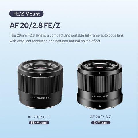 Das Viltrox AF 20 / 2,8 FE ist ein Autofokus-Objektiv für Sony E-Mount/Nikon Z-Mount-Kameramodelle.