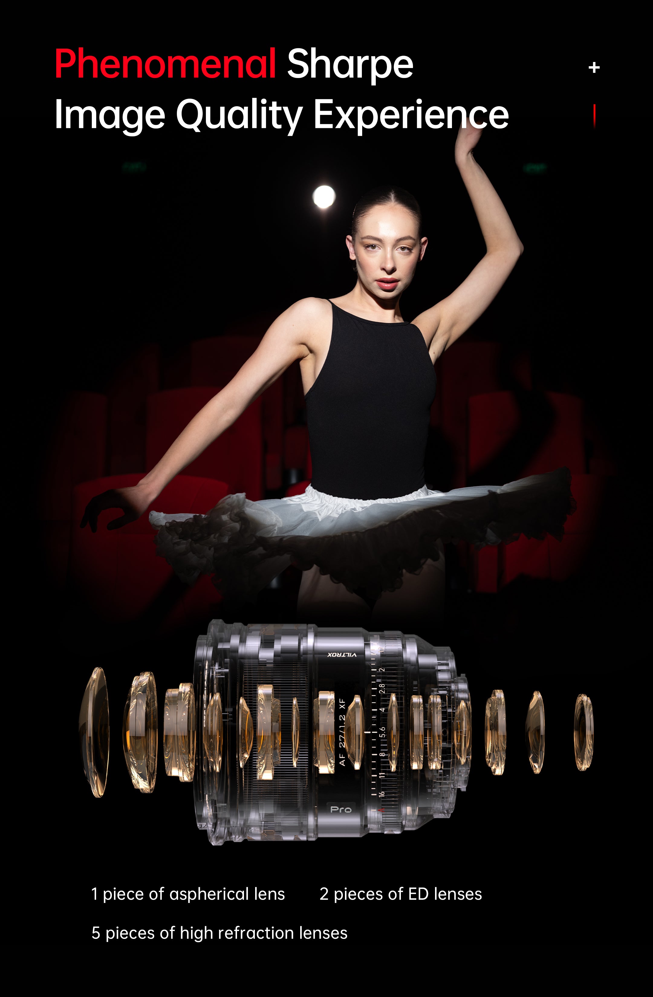 Das AF 27mm F1.2 Pro Objektiv ist nach dem AF 75mm F1.2 Pro das zweite Objektiv der Pro-Flaggschiff-Serie von Viltrox mit extrem großer Blendenöffnung. Es setzt die erstaunliche ultrahohe Auflösung der Pro-Serie fort und bietet mit der F1.2-Blende ein extrem angenehmes Bokeh.