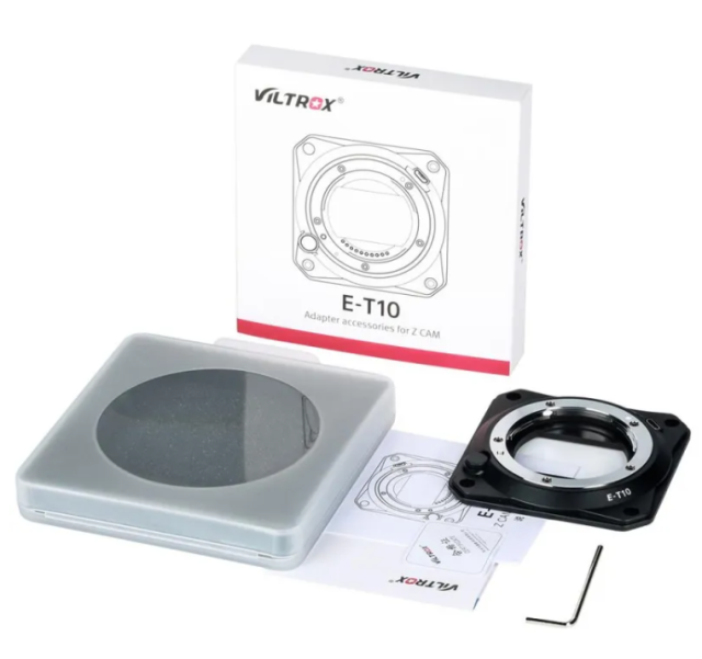 Der Viltrox E-T10 Autofokus-Adapter ermöglicht die Verwendung von Sony E-Mount-Objektiven an Kameras der Z CAM E2-Serie und unterstützt Autofokus, EXIF-Datenübertragung und Blendenanpassung. Er wurde für Kreative entwickelt, die Kameras der Serien Z CAM E2-M4, E2-S6, E2-F6 und E2-F8 verwenden, und erweitert die Objektivkompatibilität bei gleichzeitiger Aufrechterhaltung einer nahtlosen elektronischen Kommunikation.