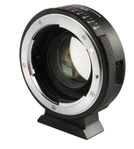 Der Viltrox NF-M43X 0,71x Objektivadapter ist ein Speed Booster, mit dem Nikon-Objektive mit F-Bajonett an Micro-Four-Thirds-Kameras (MFT) verwendet werden können. Er reduziert den Crop-Faktor und erhöht die Lichtdurchlässigkeit um eine Blendenstufe.