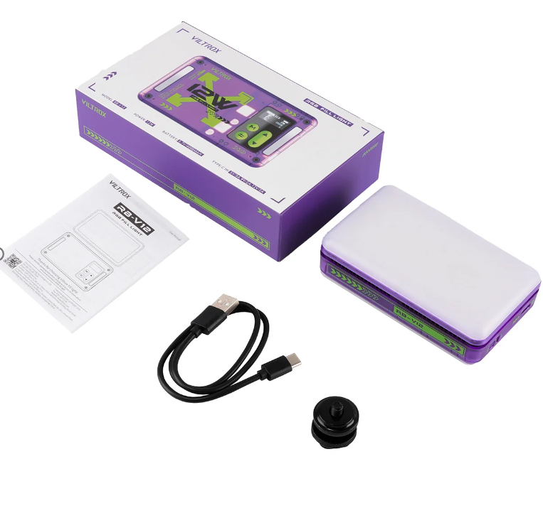 Die magnetische tragbare RGB-LED-Leuchte Viltrox RG-V12 / RB-V12 ist ein kompaktes und dennoch leistungsstarkes 12-W-Softlight-Panel, das für die Porträtfotografie und kreative Beleuchtung entwickelt wurde. Mit 108 hochwertigen LED-Perlen, vollständiger RGB-Farbsteuerung, einstellbarer Farbtemperatur von 2500 K bis 8500 K und einer starken magnetischen Befestigung bietet sie professionelle Beleuchtungsleistung in einer leichten, tragbaren Form.