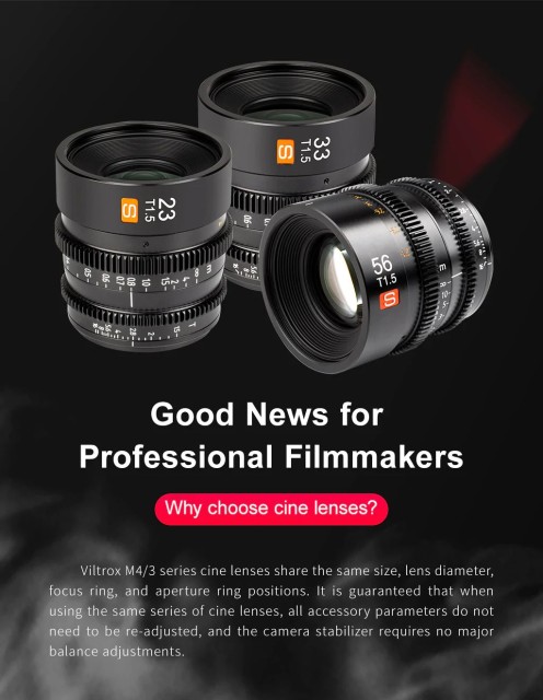 Viltrox Film-MFT-Objektive bieten eine einheitliche Größe/Gewicht/Gewicht/Kontrolle für eine einfache Austauschbarkeit innerhalb von Kamera-Rigs. Sie verfügen außerdem über eine sehr gute T/1,5-Blende, gezahnte Blenden-/Fokussierringe, hervorragende Schärfe, minimale Atmung, geringe Verzeichnung und chromatische Aberration, eine Nanobeschichtung zur Minimierung…