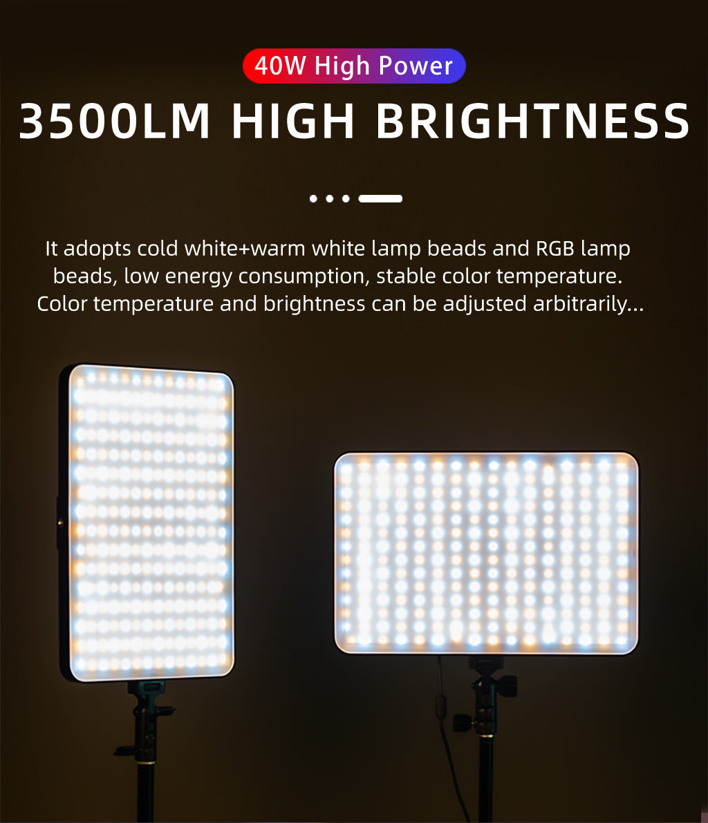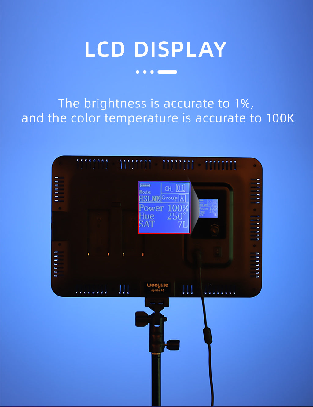 Sprite 40 ist ein professionelles RGB-Licht für die Fotografie, das sich durch einen hohen Index (weiß+warm) und hochwertige farbige RGB-Lampenperlen auszeichnet, deren Farbtemperatur und Helligkeit einfach eingestellt werden kann.