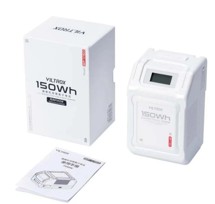 Der Viltrox BP-V150 V-Mount-Akku ist eine leistungsstarke Lithium-Ionen-Stromversorgungslösung mit einer Kapazität von 150 Wh (10050 mAh), die für professionelle Film- und Fotoaufnahmen entwickelt wurde. Er verfügt über mehrere Ausgangsanschlüsse, eine schnelle PD-Ladefunktion, eine LCD-Statusanzeige und einen robusten Sicherheitsschutz.