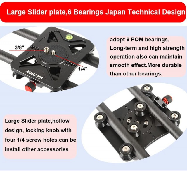 Der VC80 Carbon Fiber Track Slider von Viltrox ermöglicht eine Vielzahl von Kameramontageoptionen und gewährleistet eine reibungslose und stabile Bewegung der Ausrüstung. Der leichte, wackelfreie Schlitten kann bis zu 22 kg tragen und verfügt über eine 3/8"-16-Schraube an der Schlittenplatte zur Befestigung einer Kamera oder eines Kugelkopfes. Er verfügt über vier verstellbare Füße, um den Slider auf dem Boden oder auf einem Tisch zu platzieren. Der Schieber verfügt über 1/4"-20- und 3/8"-16-Schraubenlöcher an der Unterseite und 1/4"-20-Schraubenlöcher an beiden Enden für horizontale und vertikale Montagemöglichkeiten. Für zusätzlichen Komfort ist eine Tragetasche im Lieferumfang enthalten.