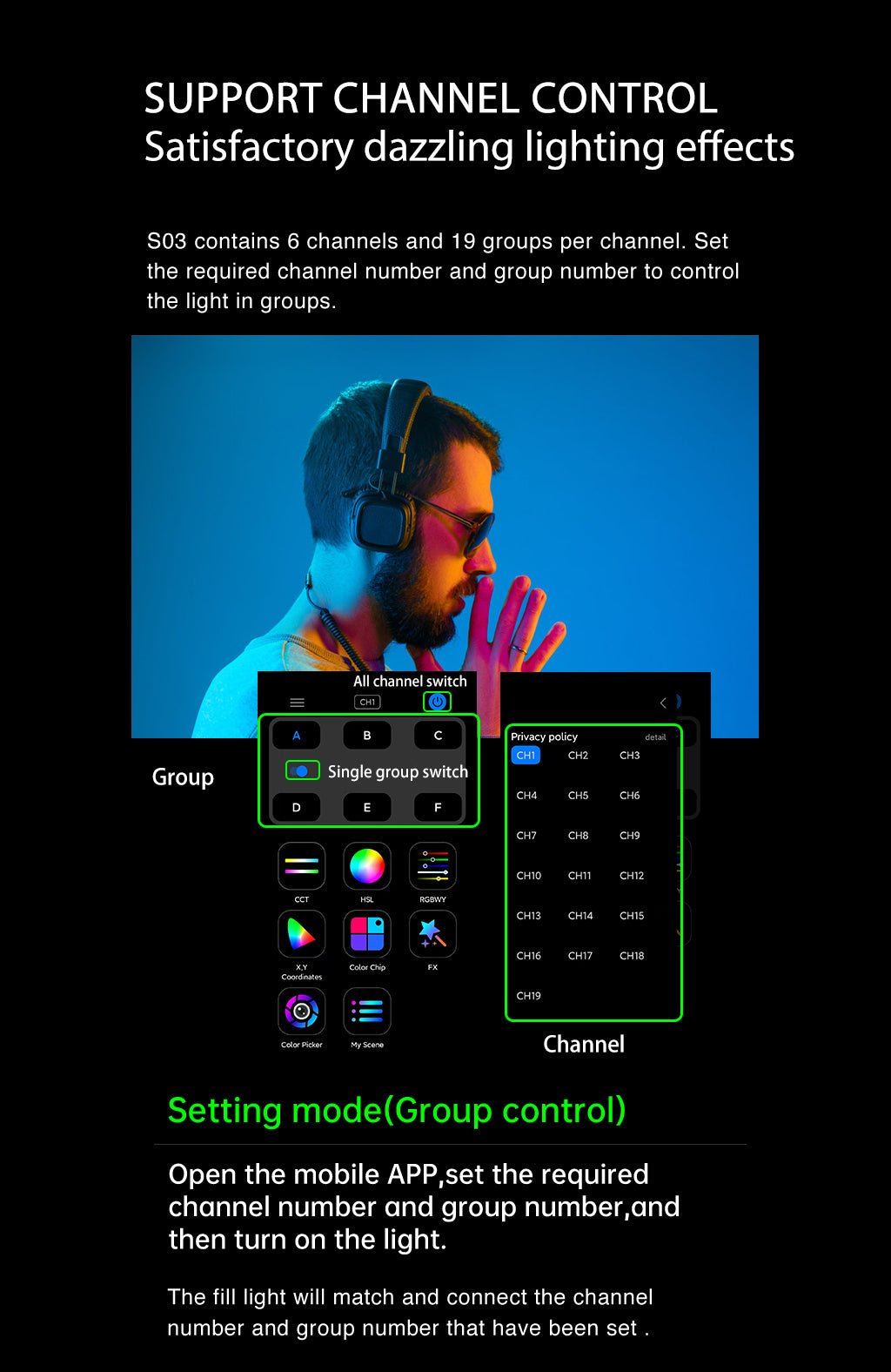 | Light control | Bluetooth IOS/Android application |