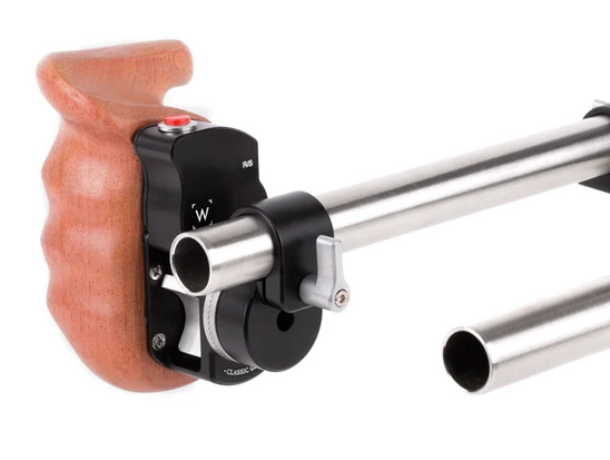 mit der 19-mm-Stabklemme auf ARRI-Rosette können Sie einen einzelnen ARRI-Standardhandgriff an einem 19-mm-Stab befestigen. Dies ist ideal, um eine kompakte Konfiguration mit einem unserer Kameragriffe aus Holz, dem Rosettengriff (braunes Leder) oder dem Rosettengriff (Gummi) zu erstellen. ARRI-Handgriffe von Drittanbietern sind ebenfalls geeignet.