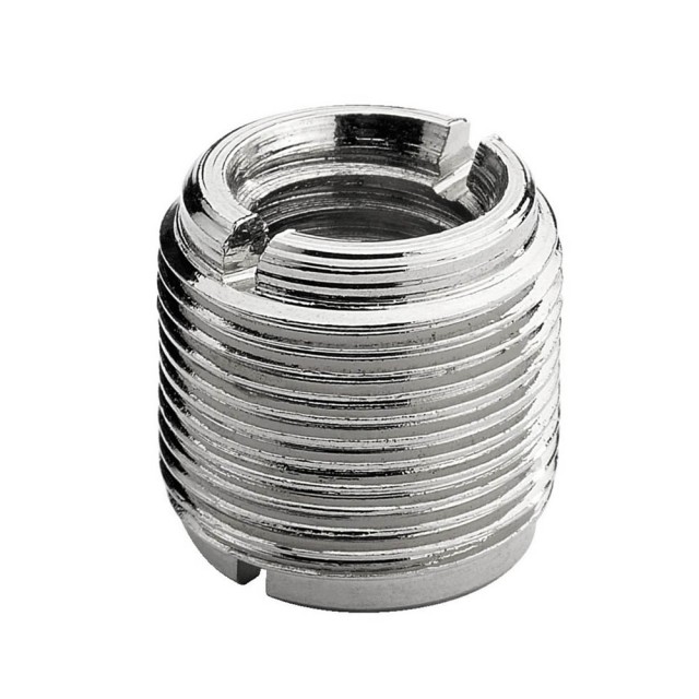 Adaptergewinde für Mikrofonstative und Schwanenhalsmikrofone. Außengewinde 16 mm (⅝"), Innengewinde 9 mm (⅜").