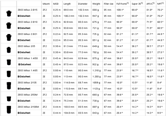 Die ZEISS Milvus Objektivfamilie mit manuellem Fokus bietet einen optimalen Brennweitenbereich und eine hervorragende optische Leistung. Die Objektive eignen sich für die Aufnahme von Reportagen, Dokumentarfilmen oder Musikvideos mit modernen hochauflösenden 6K+ Digitalkameras mit großem Dynamikumfang. Natürlich sind die reibungslose Schärfekontrolle und die tadellose Verarbeitung die Markenzeichen. Milvus-Objektive sind in den Versionen ZE (für Canon EF-Mount) und ZF.2 (für Nikon F-Mount) erhältlich.