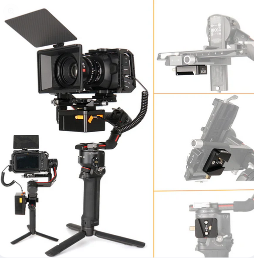 Die ZGCINE VR-04 Mini V-Lock Plate wurde für DJI Ronin S2/S3 Mini Gimbal Stabilizer entwickelt und bietet eine sichere und effiziente Stromversorgungslösung. Sie ermöglicht eine nahtlose Integration mit V-Mount-Akkus und sorgt so für eine längere Laufzeit bei professionellen Filmaufnahmen und Stabilisator-Setups.