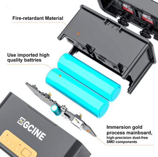 Das ZGCINE GoPro Battery Charging Case (PS-G10 MINI Kit 2) ist eine kompakte und effiziente Ladelösung für GoPro Akkus. Es enthält einen Ladekoffer und zwei 901-Akkus, die für eine längere Stromversorgung bei Ihren Action-Kamera-Abenteuern sorgen.