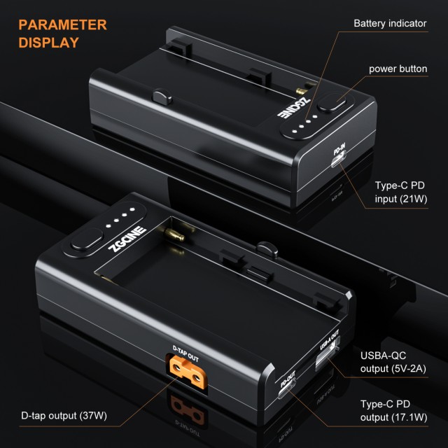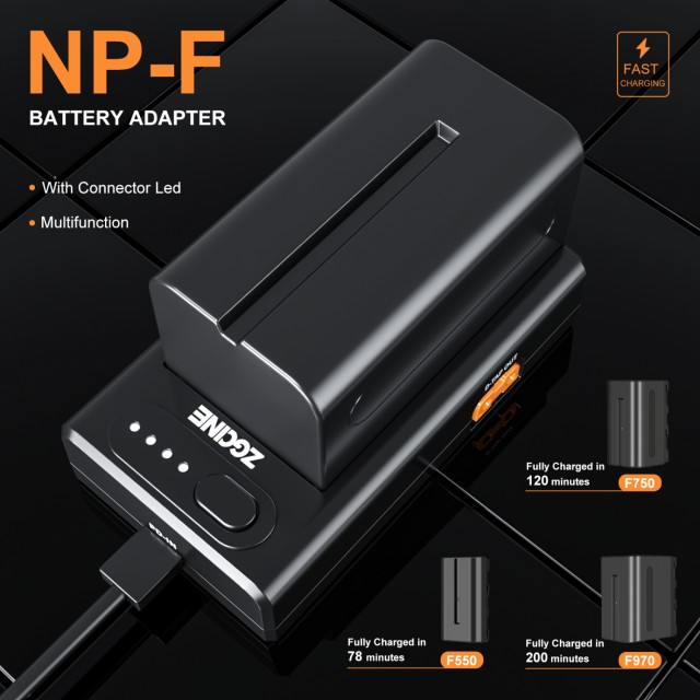 Der ZGCINE NPF Battery Multi-Use Charger Adapter ist eine vielseitige Stromversorgungslösung, die USB-C PD-, USB-A- und D-Tap-Ausgänge unterstützt. Er ermöglicht das schnelle Aufladen von NP-F-Akkus und kann Kameras, Monitore und andere Geräte mit Strom versorgen.
