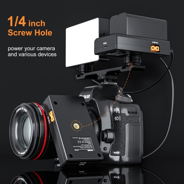 Ausgestattet mit einem USB-C PD-Eingang und -Ausgang, einem USB-A-Ausgang und einem D-Tap-Ausgang sorgt dieser Adapter für Flexibilität und Bequemlichkeit bei Setups für unterwegs. Sein kompaktes Design macht ihn zu einer ausgezeichneten reisefreundlichen Stromversorgungslösung für die professionelle Videoproduktion.