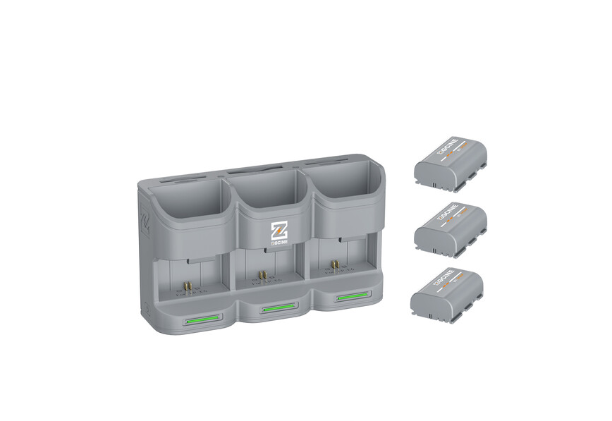 Das ZGCINE PC3-LPE6P Reise-Ladeetui-Set enthält drei leistungsstarke 2600-mAh-LP-E6P-Akkus und ein kompaktes graues Ladeetui und bietet zuverlässige, tragbare Energie für Canon-Kameras, Blackmagic Pocket Cinema Cameras, Z CAM-Modelle und kompatibles Zubehör wie Griffe, Halterungen und drahtlose Objektivsteuerungssysteme.