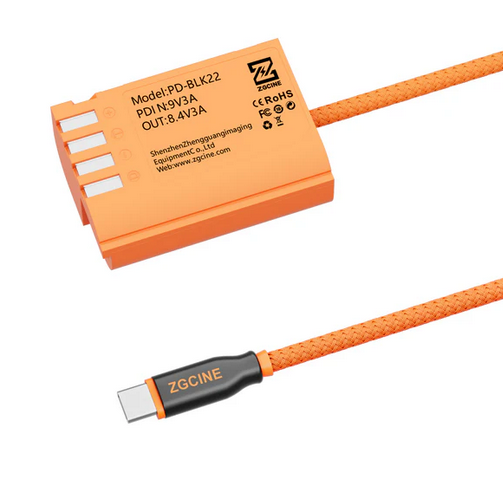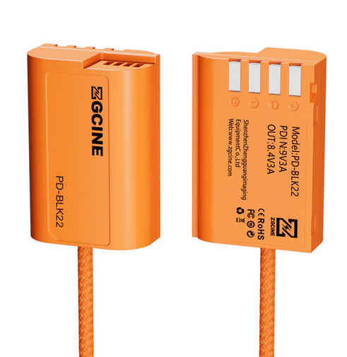 Versorgen Sie Ihre ZGCINE-Kamera mit dem Dummy-Akku PD-BLK22 mit Strom. Diese zuverlässige Stromversorgungslösung gewährleistet kontinuierliche Aufnahmen und eine längere Nutzungsdauer. Perfekt für Filmemacher und Fotografen, die einen unterbrechungsfreien Betrieb benötigen. Katalognummer PD-BLK22 zur einfachen Identifizierung.