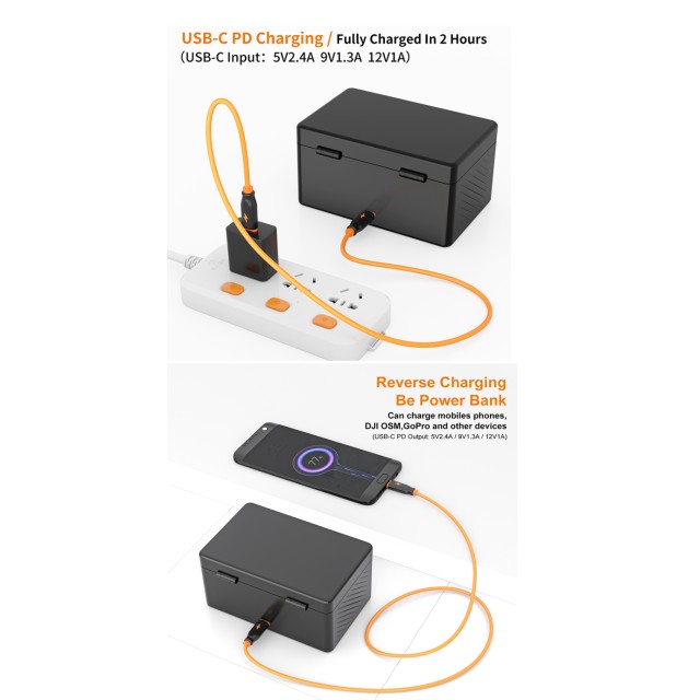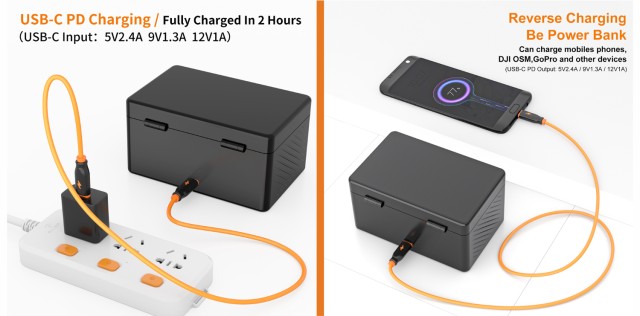 Mit einem eingebauten 3400mAh-Akku kann das Case bis zu 6 Rode Wireless GO oder ME Einheiten aufladen, was eine längere Nutzung bei Drehs und Live-Sessions gewährleistet. Der USB-C PD 20W Eingang/Ausgang unterstützt schnelles Laden, während die drei zusätzlichen USB-C Anschlüsse (je 5V/500mA) das gleichzeitige Laden mehrerer Geräte ermöglichen.