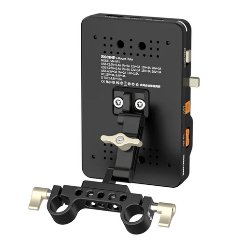 Die ZGCINE V-Mount-Platte VP1 Kit3 bietet vielseitige Stromversorgungslösungen mit USB-C-PD-Ausgängen, mehreren Ausgangsanschlüssen und einem verstellbaren Arm für Kamera-Rigs. Es verfügt über eine Ein-Knopf-Steuerung, eine Batterieanzeige und V-Mount-Kompatibilität nach Industriestandard.