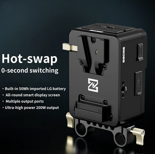 Die ZGCINE VM-HS1 ist eine interne V-Mount-Platte mit Hot-Swap-Akku, die für die kontinuierliche Stromversorgung von RED-, Arri- und anderen professionellen Kameras entwickelt wurde. Sie verfügt über einen integrierten 50-Wh-Akku für nahtloses Hot-Swapping, mehrere Ausgangsanschlüsse, darunter zwei USB-C-PD- und vier D-Tap-Anschlüsse, sowie ein 0,96-Zoll-IPS-Display mit Countdown-Erinnerungsfunktion. Diese kompakte Platte gewährleistet eine unterbrechungsfreie Stromversorgung bei langen Dreharbeiten.