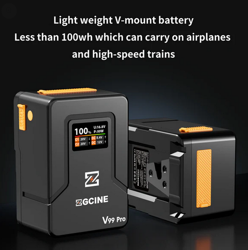 Der ZGCINE ZG-V99Pro V-Mount-Akku ist eine verbesserte Version des V99 und wurde für Profis entwickelt, die eine zuverlässige und leistungsstarke Stromquelle benötigen. Mit der PD 100W-Schnellladefunktion kann dieser Akku mit einem kompatiblen Ladegerät in nur 1,5 Stunden vollständig aufgeladen werden und sorgt so für minimale Ausfallzeiten bei Aufnahmen. Das 1,1-Zoll-Smart-Display ermöglicht die Echtzeitüberwachung von Spannung, Gesamtleistung, Temperatur und anderen wichtigen Informationen. Ausgestattet mit mehreren Ausgangsanschlüssen, einschließlich USB-C, D-Tap und DC, ist das V99Pro mit einer Vielzahl von Geräten wie Videokameras, Kameramonitoren, LED-Leuchten, Smartphones und Computern kompatibel.