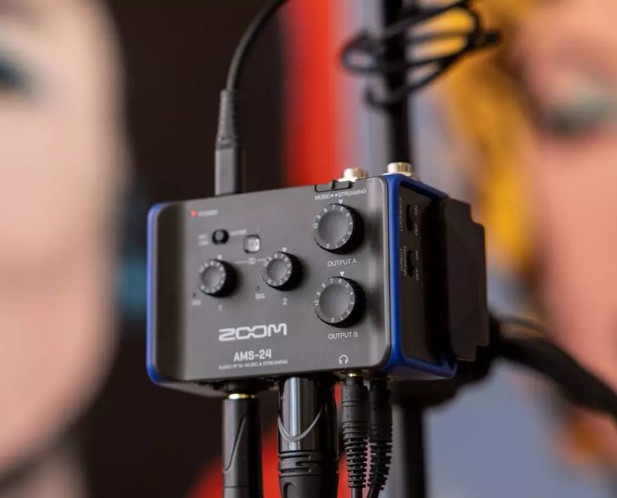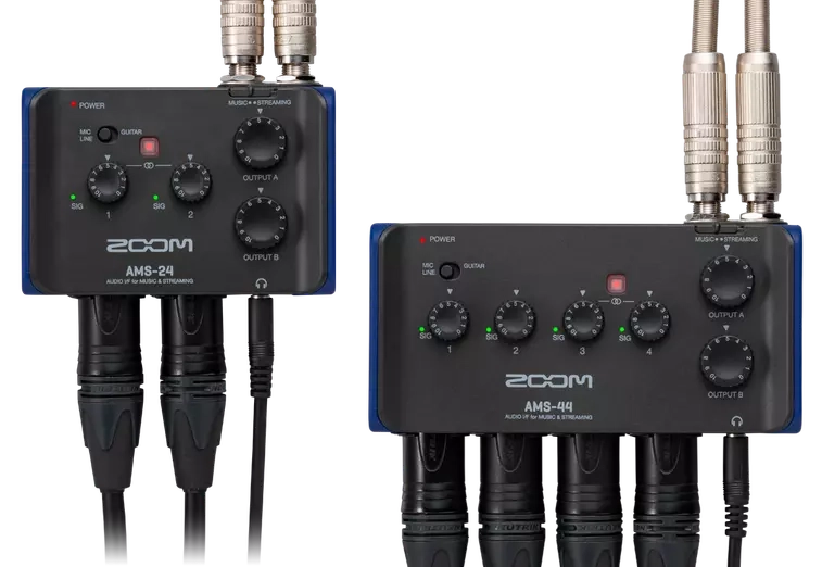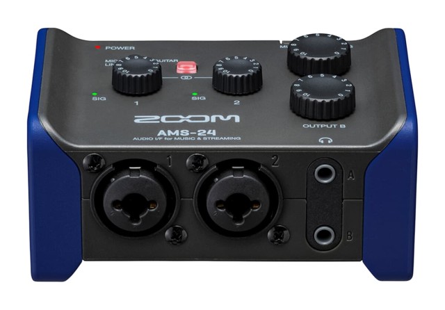 Der AMS-24 ist die perfekte Lösung für Solo-Streams und Sessions mit mehreren Instrumenten. Er bietet zwei kombinierte XLR/TRS-Eingänge mit rauscharmen Zoom-Vorverstärkern. Außerdem gibt es zwei Kopfhörerausgänge und zwei TRS-Ausgänge für den Anschluss externer Monitore.