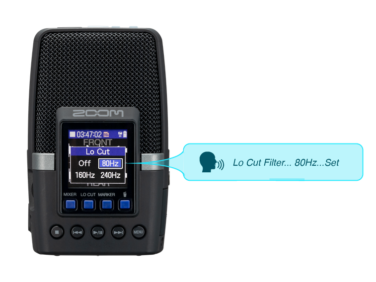 Der H2essential verfügt über fortschrittliche Funktionen wie einen Low-Cut-Filter, Pre-Record, Auto-Record und eine einstellbare Wiedergabegeschwindigkeit.