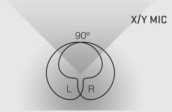 Technika X/Y umožnuje pokrýt velkou plochu a zároven jasne zachytit zdroje zvuku, které se nacházejí prímo uprostred. Díky tomu je ideální pro všechny druhy živých stereo nahrávek.